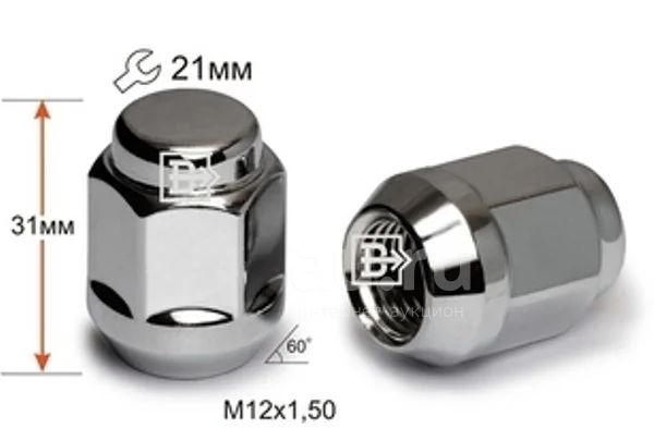 Гайка 12*1,5 высота 31мм, ключ 21мм, закрытая, Хром, Конус с выступом, Арт. 901345 Cr