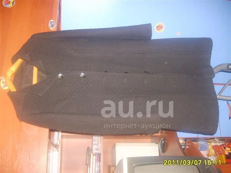 пальто черное на синтепоне размер 44-46,на пуговицах.Классических покрой,приталенное, индивидуальный пошив.По бокам внутренние карманы, неглубокие.Длина 95см.