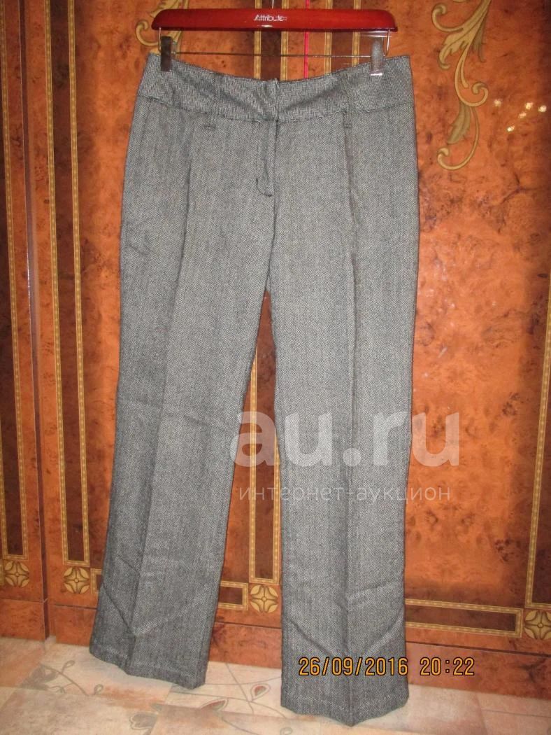 Объем талии: 86см, длина брюк по внешнему краю: 99см. Состав: 60% - шерсть; 40% - полиэстер. Брюки на подкладе.
