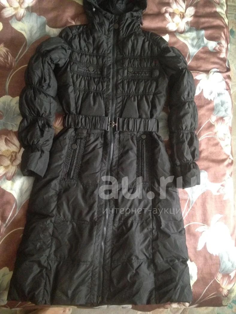 Пуховик состав 80% пух, 20% перо.Карманы на молнии, на груди 2 кармашка на молнии.Капюшон затягивается на шнурок с фиксаторами.Пояс с пряжкой.Все молнии рабочие, потертостей на ткани нет.