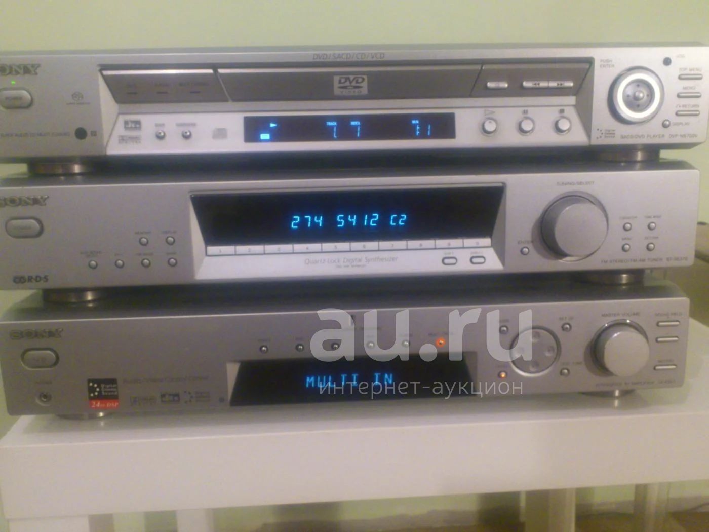 Состоит из трех блоков : 1 ресивер TA-KSL7. 2 Тюнер ST-SE370. 3 DVD/CD Проигрыватель DVP-NS700V. Акустика 5.1 активный сабвуфер. Два пульта д/у. Все работает исправно. Все провода к нему есть. Нет инструкции и описания.