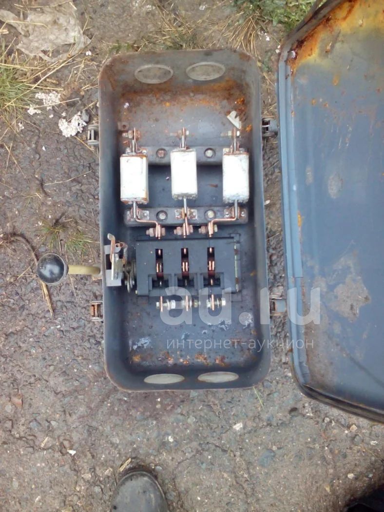 Ящик металлический с рубильником на три фазы. Предохранители типа ПН на 100 А, суммарный ток 300А, напряжение 220-380В. Контактная группа в идеальном состоянии. Есть коррозия на металле ящика.