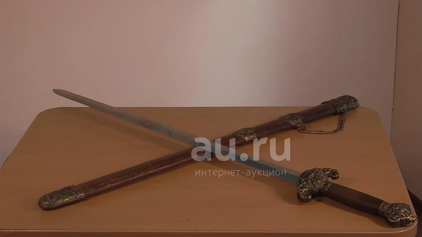 В хорошем состоянии. Меч не имеет заточки. Легко вынимается из ножен. Имеет достаточно тяжелый вес, как настоящий меч.
