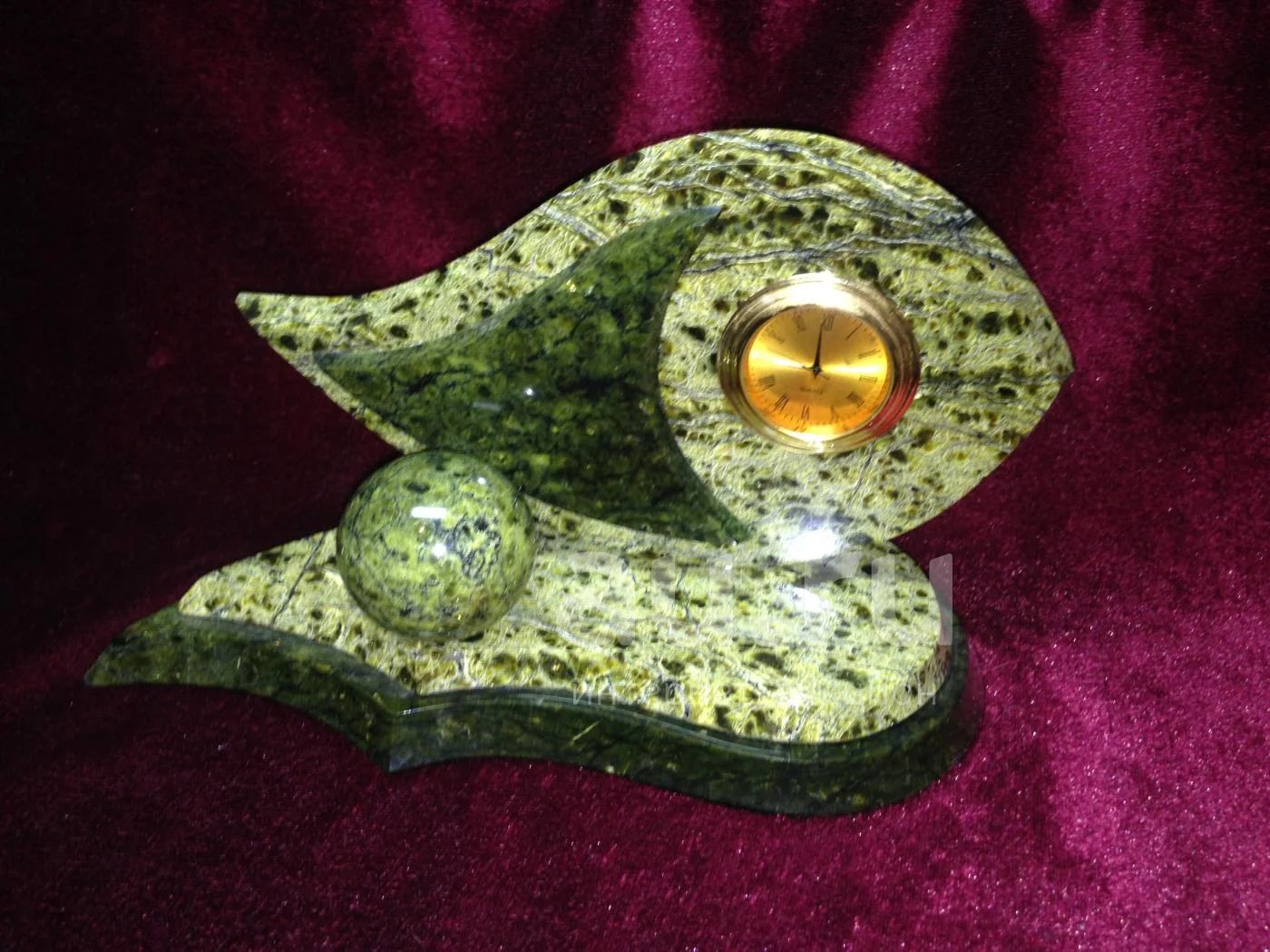 Часы из змеевика "Рыбка"