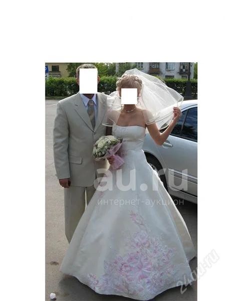 Очень красивое свадебное платье цвета шампань в отличном состоянии,платье расшито+стразы,сзади шлейф, р.44-46. Фата в подарок!