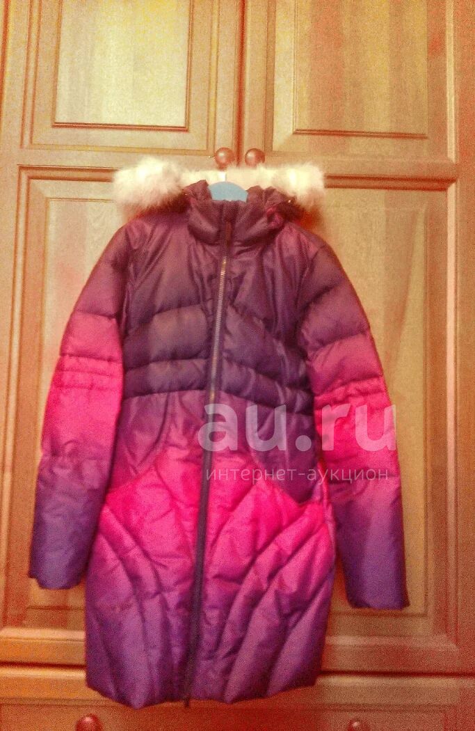 Пуховик на девочку, рост 152 см, покупали в "Чемпионе". Длина по спинке 75 см, длина рукава 60 см. Есть небольшие потёртости спереди, но они незаметны.