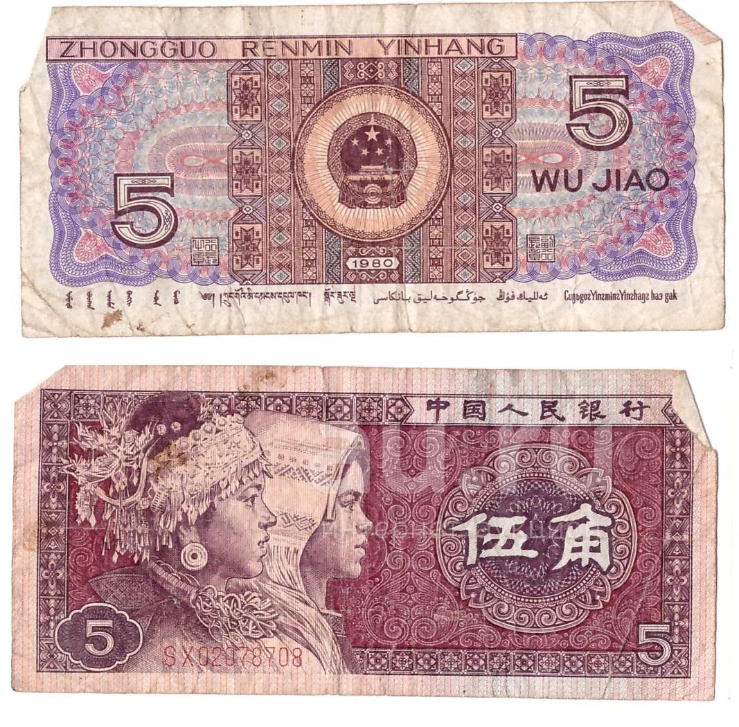 Китай. 5 цзяо 1980 г. с рубля!