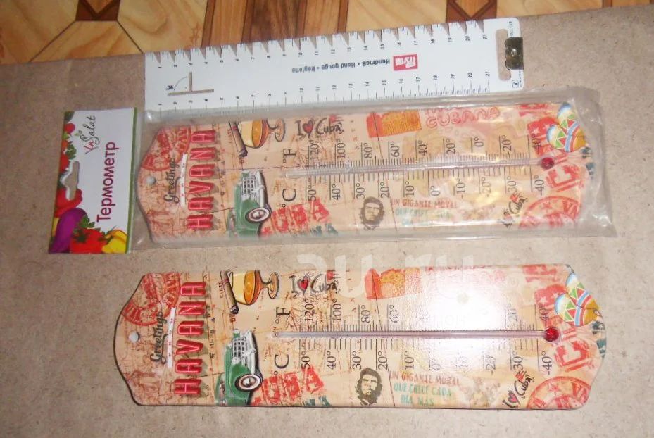 термометр в ретро стиле на деревянной основе большой 25 см