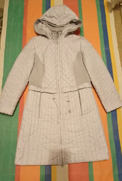 Куртка в отличном состоянии, размер 42-44. Полностью целая, замки в отличном рабочем состоянии. На пуху, на теплую зиму или холодную осень, но я и зимой носила с очень теплой кофтой. На капюшоне искусственный мех.