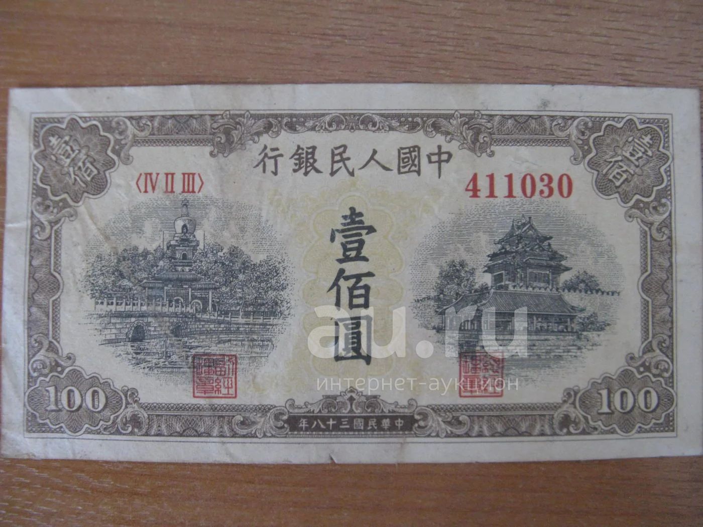 Китай 100 юаней 1949 года. 2 тип.