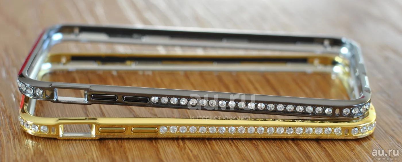 Металлический бампер со стразами золотого цвета для iPhone 6/6S