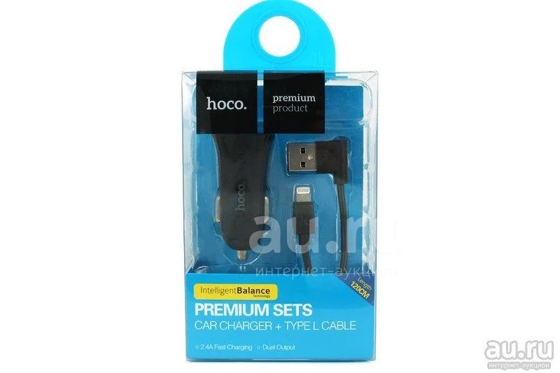 Автомобильное зарядное устройство с 2USB HOCO UC204 2,4 A + кабель Apple 8 pin, черный(00036855)