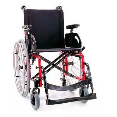 Складная кресло-коляска с облегченной крестовой перекладиной и малогабаритными колесами для узких проходов. Передние вилки регулируются по наклону и высоте. Коляска оснащена съемными и настраиваемыми по высоте подлокотниками. Имеет съемные опоры для ног и малогабаритные колеса, легко заменяемые в случае необходимости. Вес - 14,5 кг. Грузоподъемность 120 кг. Страна-производитель -Италия.