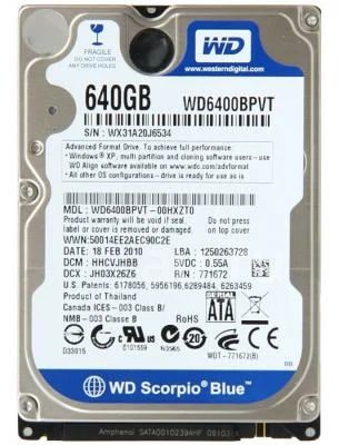 Диск для ноутбука 640гиг WD6400BPVT неисправно
