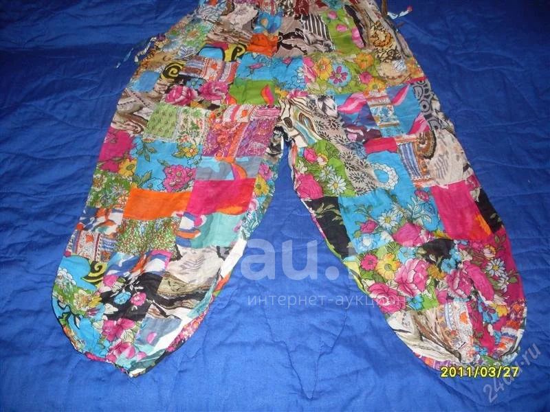 Бриджи-шаровары х/б из тонких лоскутков ткани на резинке. Размер 48-52. Производство Тайланд.