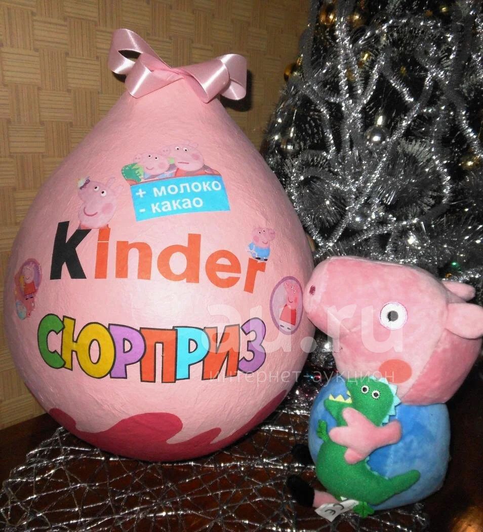 Гигантское розовое яйцо "Kinder Сюрприз" (Свинка ПЕППА ) подарочная упаковка ручной работы с розовым бантом для детей от 3-х лет, высота 36 см.! hand made 100%!