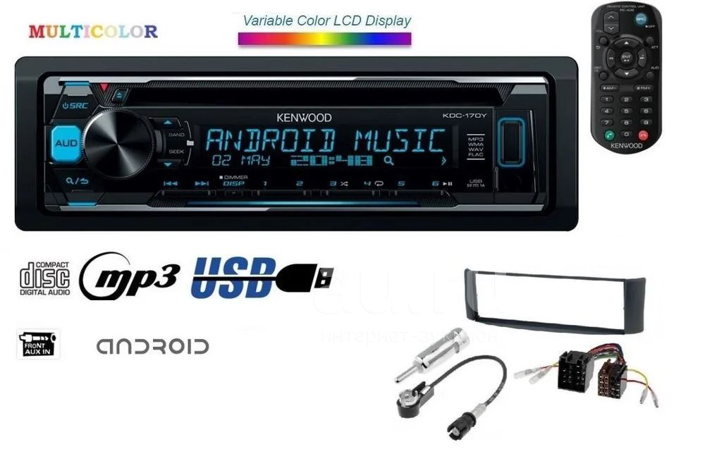 Автопроигрыватель Kenwood KDC-170Y [1 din, 4x50 Вт, AUX, USB, пульт ДУ] Новый Гарантия год Доставка
