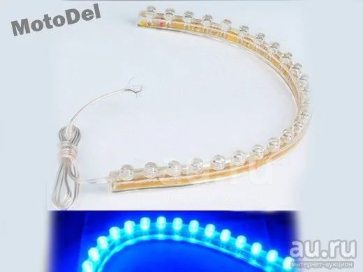 С рубля! Ходовые огни (Дневной свет ДХО), полоски, гнущиеся, светодиодные (LED), 24 cветодиода в каждой полоске. Новые, пара. СИНИЕ