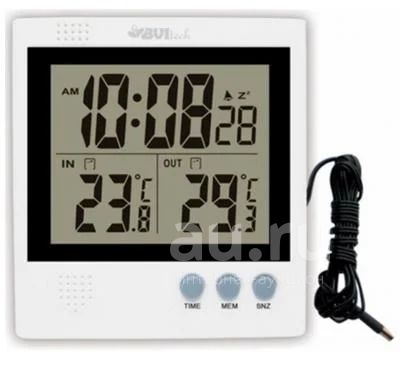 Особенности запоминание минимальных и максимальных показаний термометра, рабочий диапазон измерения температуры: от -50.0°C до +70.0°C, формат часов 12/24
