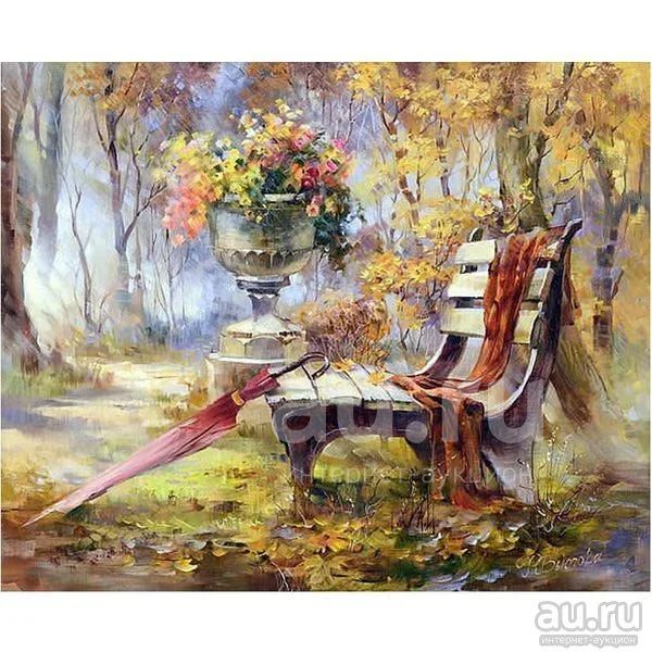 Картина рисование по номерам Лавочка с зонтом