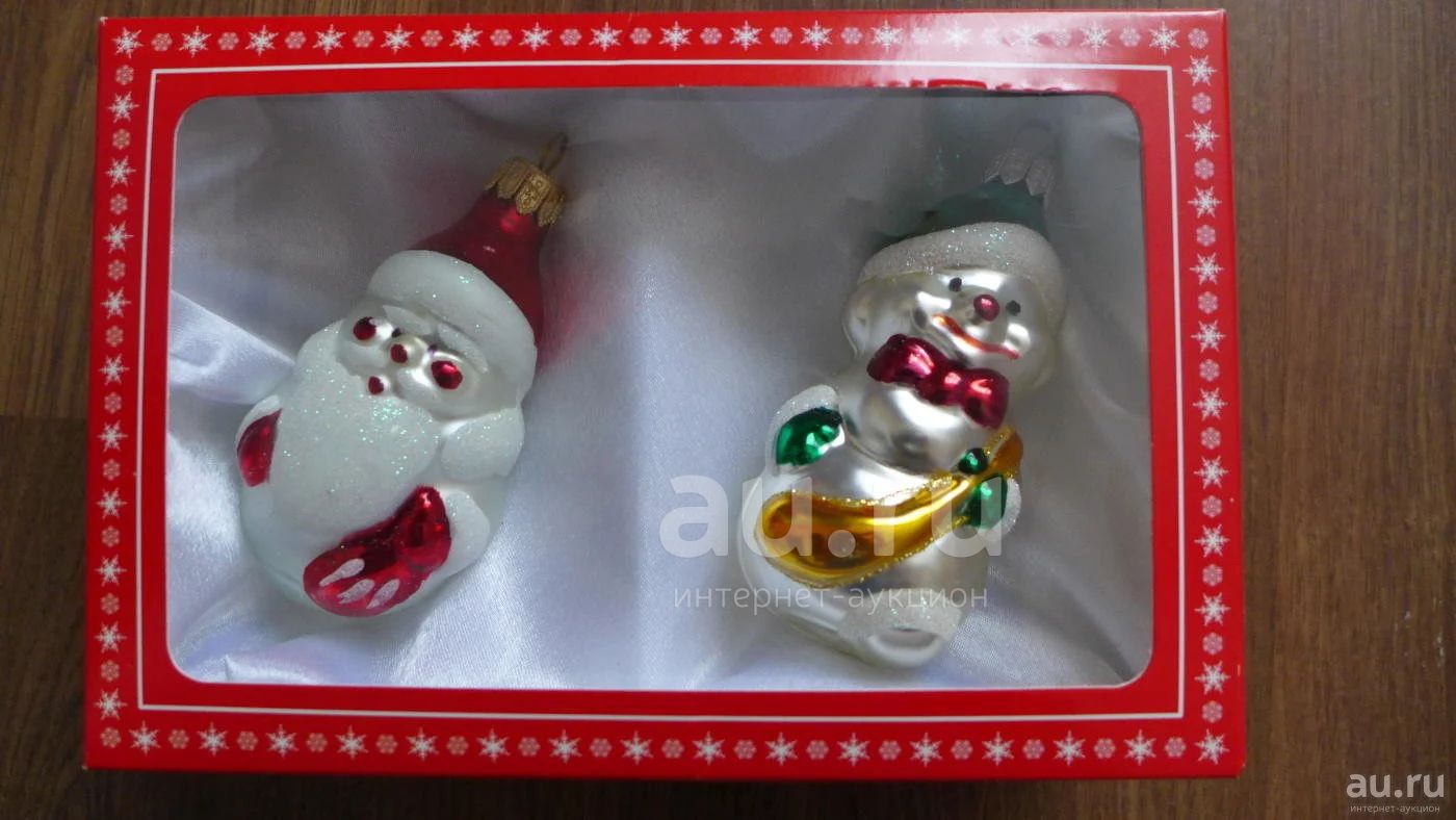 Новые Ёлочные миленькие Снеговичок+Дед Мороз 9-10см в подарок! Стекло