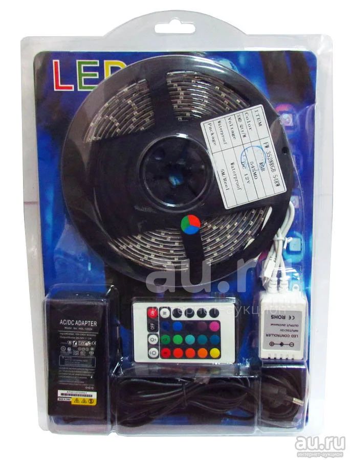 Светодиодная лента 53 самоклеющаяся 5м с пульт, адаптер цветная
