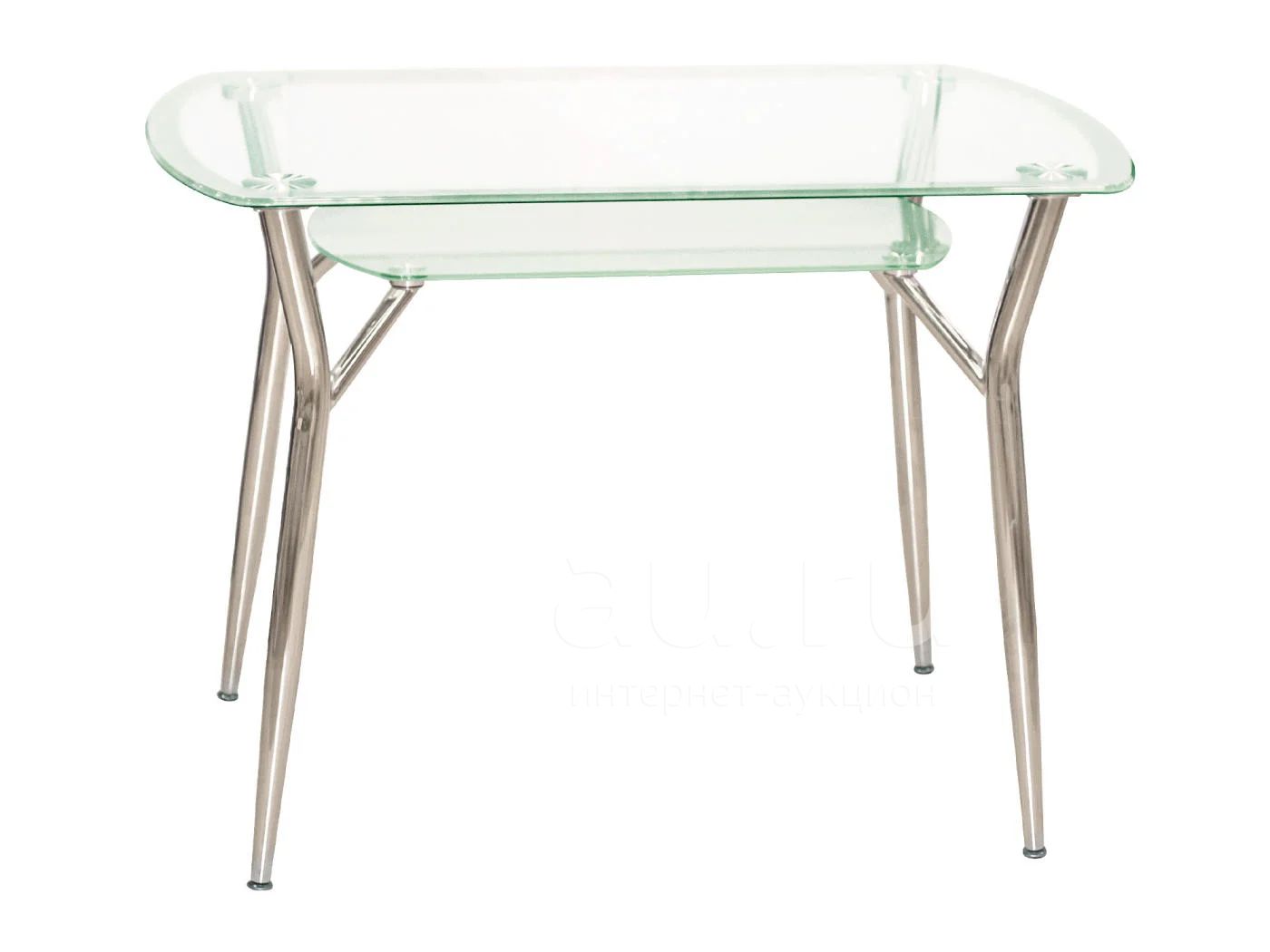 Стеклянный стол S70 - стильный обеденный стол из закаленного стекла. Столешница из прозрачного стекла с матовой окантовкой. Нижняя полка выполнена из матового стекла. Подстолье и ножки выполнены из хромированного металла (двойное покрытие хромом). На ножках установлены регулировочные винты для дополнительной устойчивости на неровных поверхностях. Изящная форма стола и прозрачность столешницы придаст легкость интерьеру кухни и соберет всю семью на ужин. Размер стола 105 х 70 см.