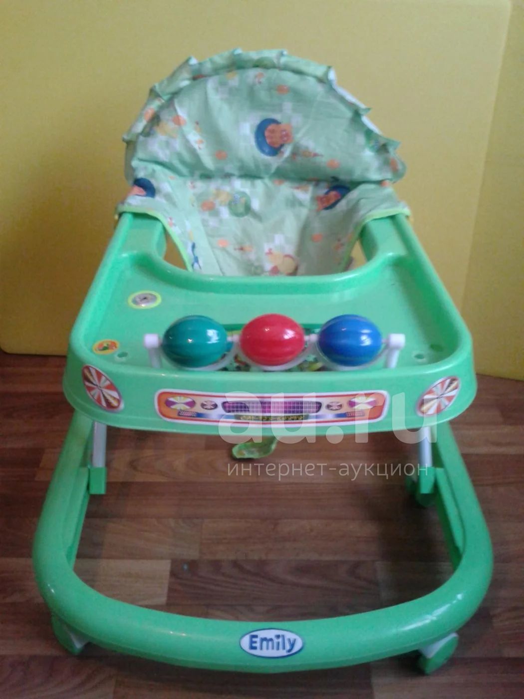 На столике несколько отверстий от дуги, в музыке необходимо менять батарейки. у сиденья отсутствует пряжка но можно зашить или завязать на узел.