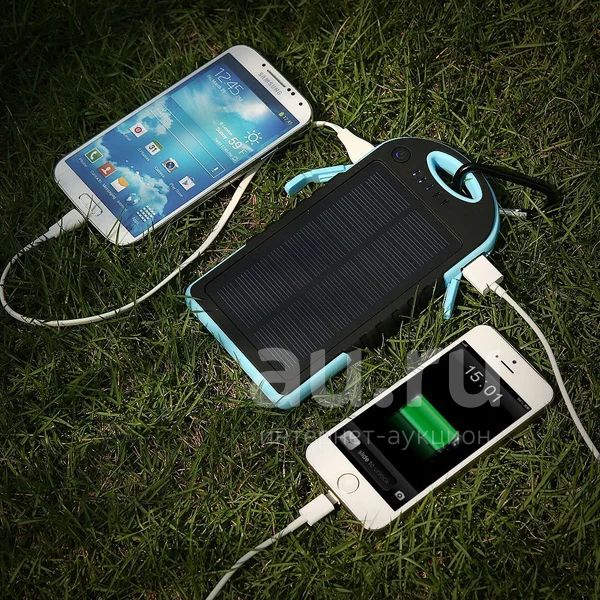 PowerBank с солнечной батареей, 2 USB (Dual USB), фонарь 6LED,Про резиненый,водостойкий!