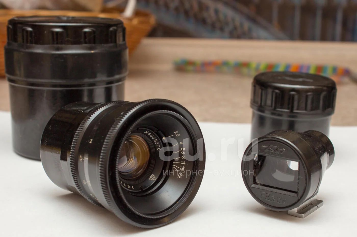 В комплекте: объектив, съемный видоискатель, задняя крышка на объектив и жесткие футляры для объектива и видоискателя.