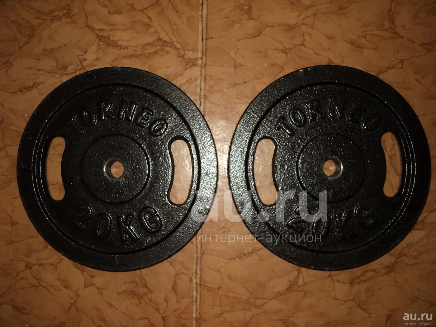 Два блина по 20 кг, фирма Torneo. Диаметр отверстия 25 мм. Могу продать по отдельности.