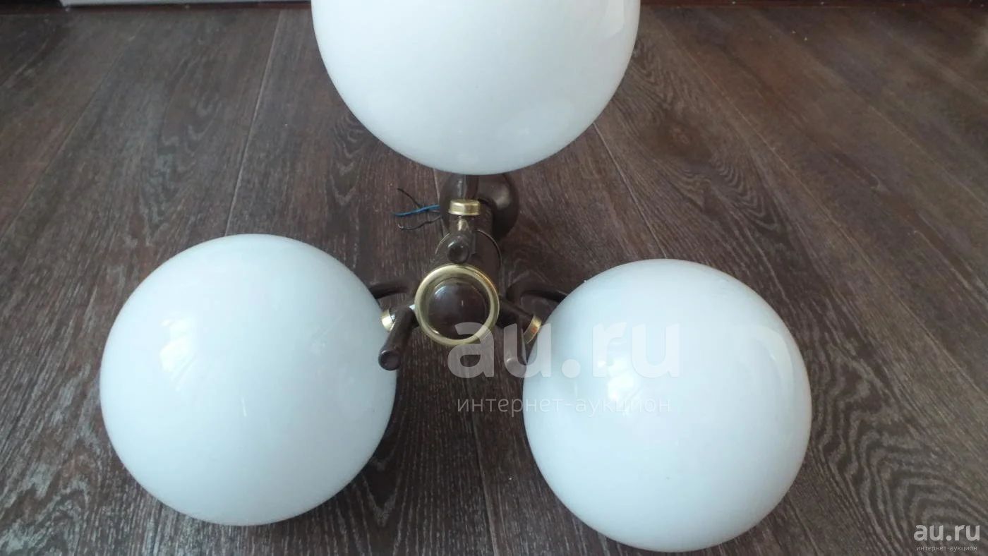 Люстра раритетная. По этикетке - импортная - известная Польская компания "Elektromechanika Ludwik Lis".. Рабочая. На металле двух плафона сверху начала отлетать краска, но когда будет висеть - видно не будет!. Плафоны -сферы, матовые. В отличном состоянии. Диаметр плафона - 17 см.