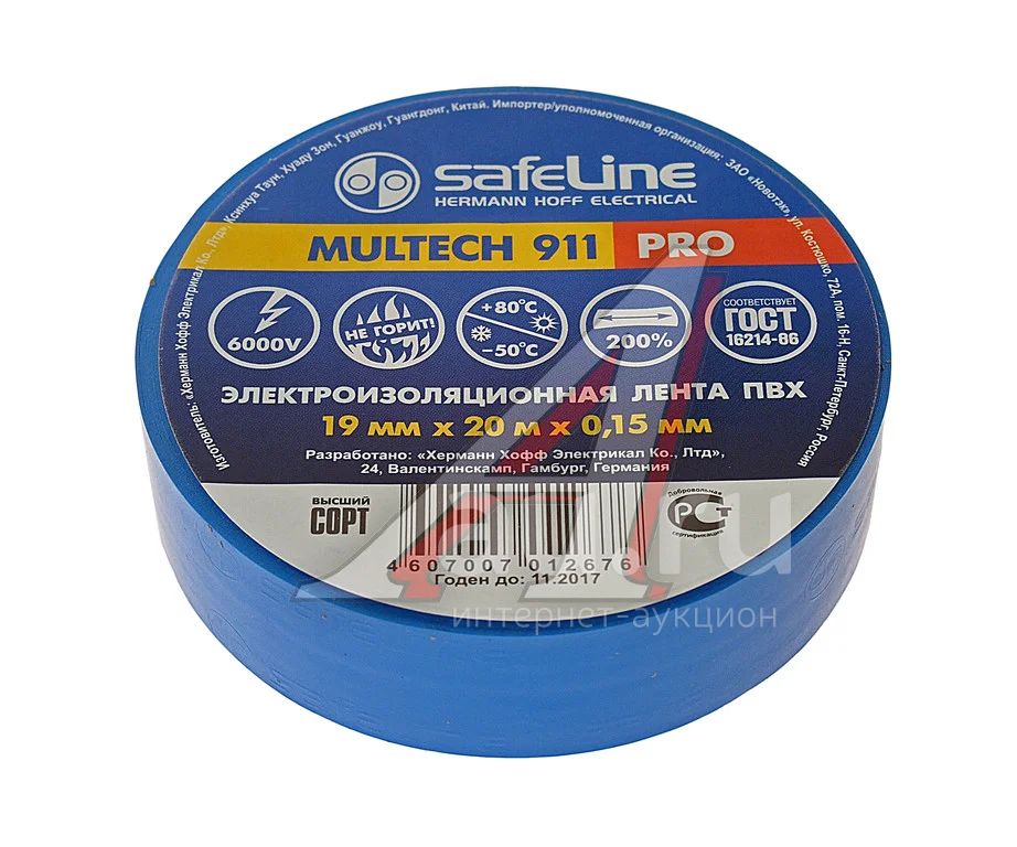 Изолента Safeline ПВХ 19мм/20м синяя 10 штук