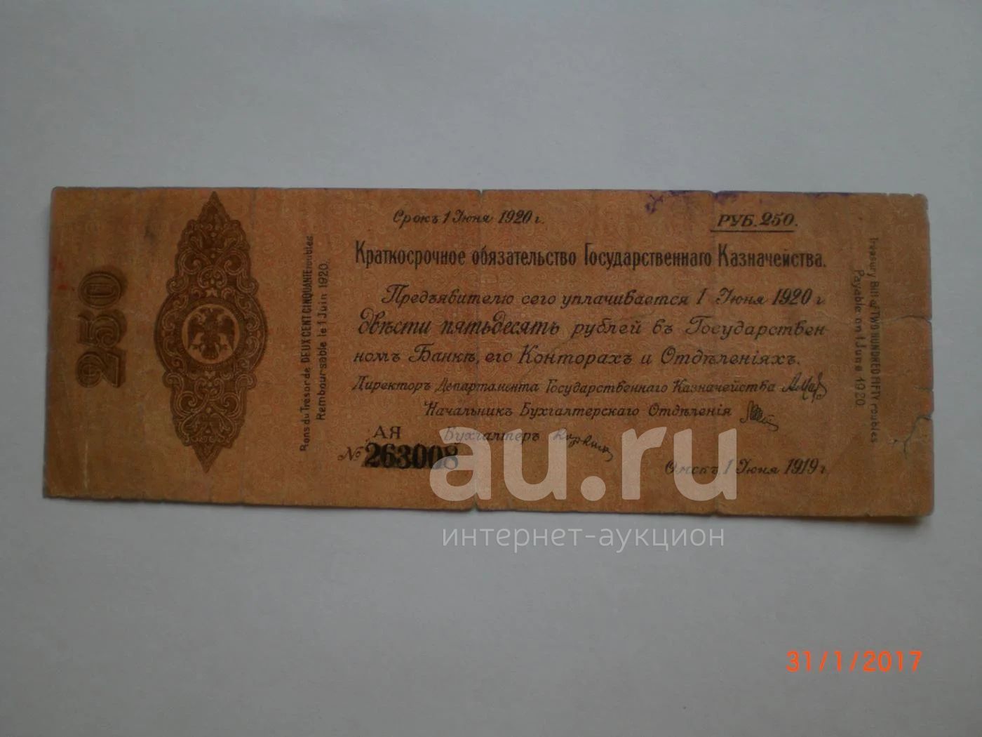 Колчак. 250 рублей. Омск 1919. Три дня!