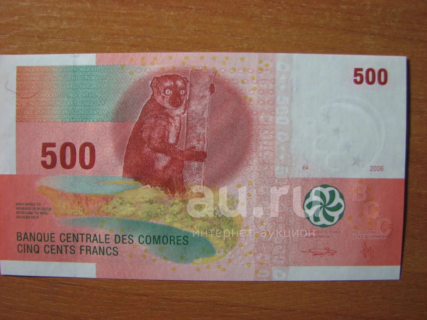 Коморские острова 500 франков 2006 года. Идеал! Обезьянка.