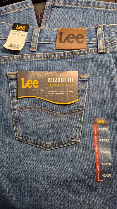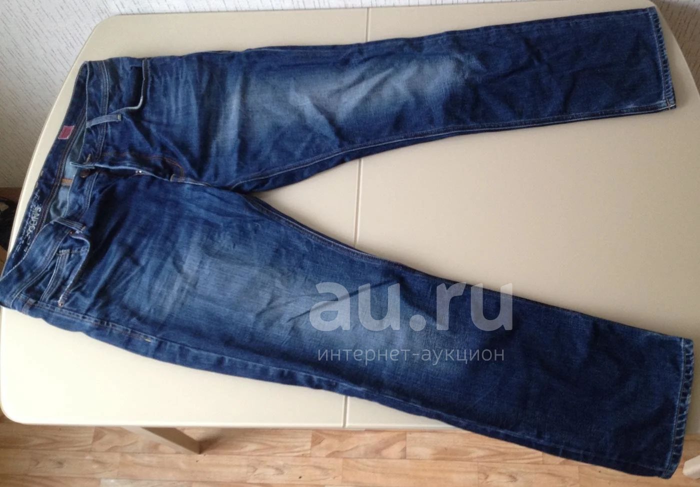 Очень качественные джинсы Colins. Размер примерно 54. Совсем немного потерты снизу (см.фото), а в остальном всё отлично.