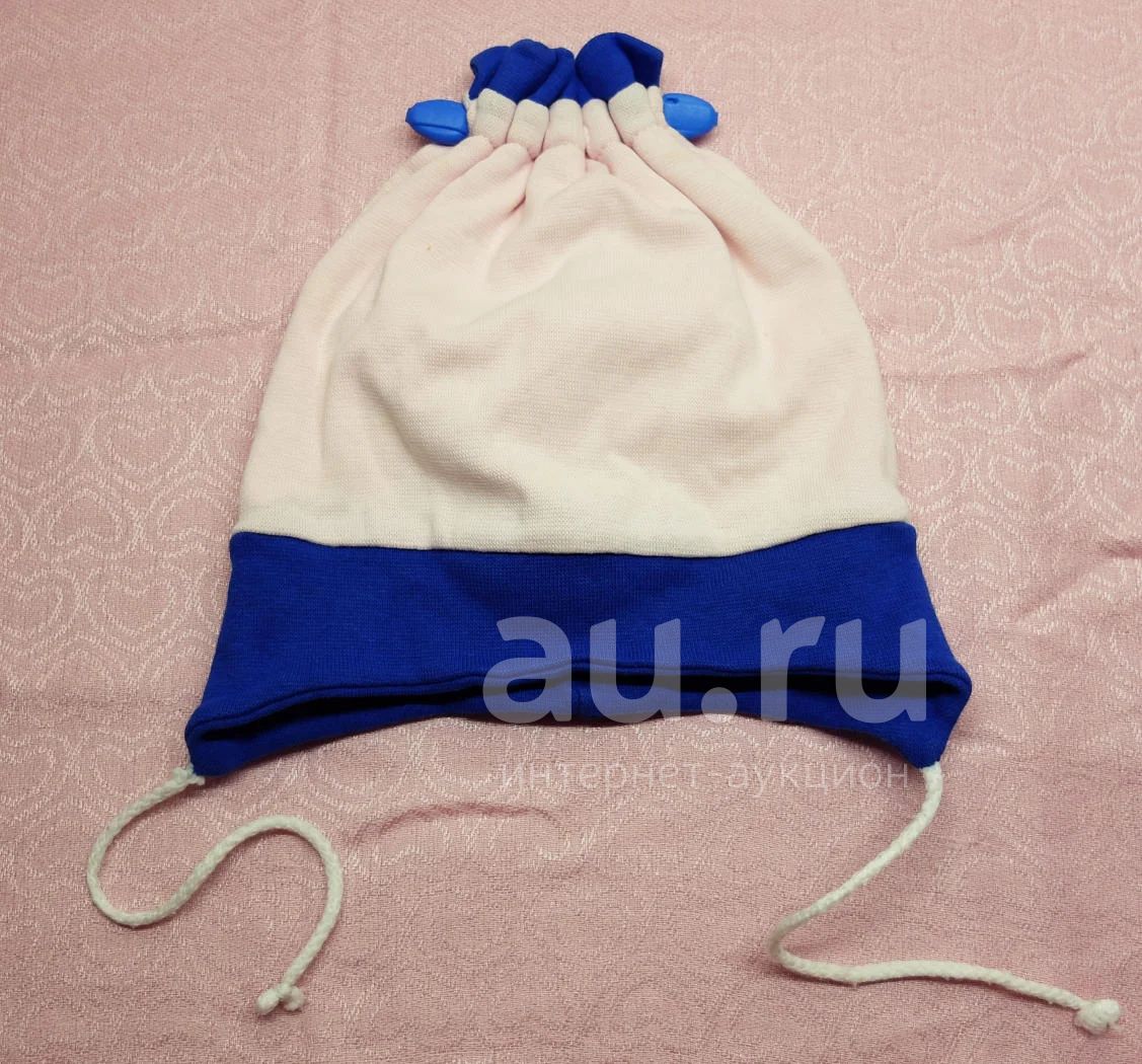 Шапочка розово-синяя с вязочками