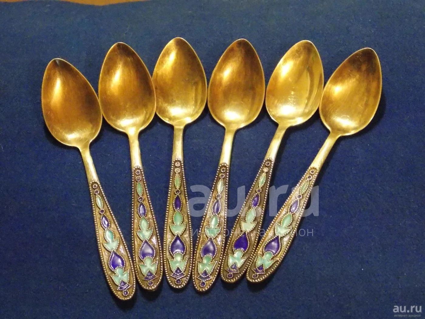 Ложки 6 шт. Серебро 875 проба. СССР ЭМАЛЬ