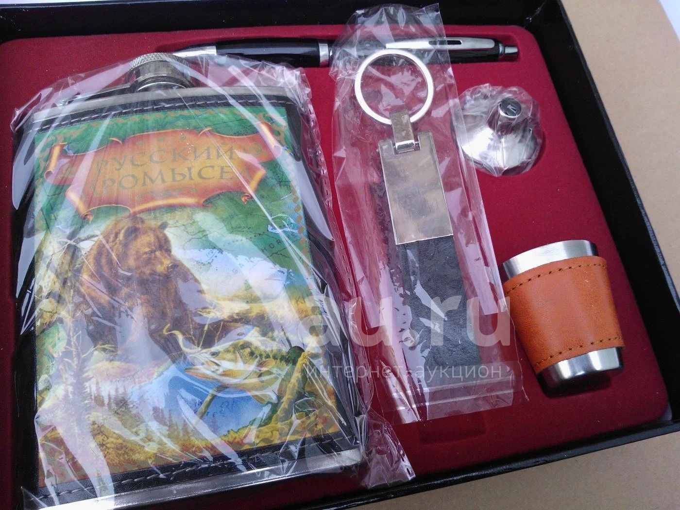 Подарочный сувенирный набор Подарочная фляжка фляга + стопка + брелок + ручка / 210 мл