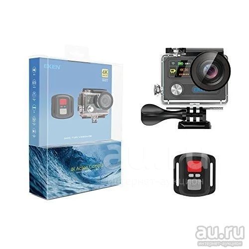Экшн-камера 4К и Wi-Fi "EKEN H8R" — недорогая модель, отличающаяся возможностью записи видео в очень высоком качестве — 4К (UltraHD) с частотой съемки 30 к/c и получения фотографий разрешением до 12 Мп. Кроме того, поддерживаются режимы видеосъемки 2.7К и FullHD. Устройство имеет широкоугольный объектив, 2 дисплея (для просмотра отснятых материалов и для отображения параметров работы камеры), порты microHDMI и microUSB для подключения к ПК, монитору или ТВ. Управлять камерой можно удаленно (со смартфона или планшета), подключившись по Wi-Fi. Заряда Li-ion аккумулятора емкостью 1050 мАч хватает для записи видео в течение 1.5 ч. В комплекте аквабокс для съемки под водой на глубине до 30 м, а также большое количество аксессуаров для крепления камеры на штатив, руль, мотошлем и т.д.
