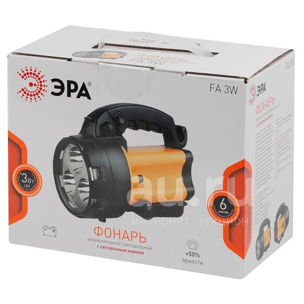 Фонарь FA3W ЭРА Аккум 4В4.5Ач, 3x1Вт LED SMD, сигнал.св., ЗУ 220V+12V, карт