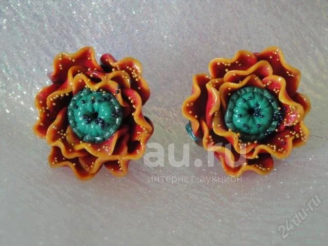 Изделия из полимерной глины,клипсы"Красные маки".