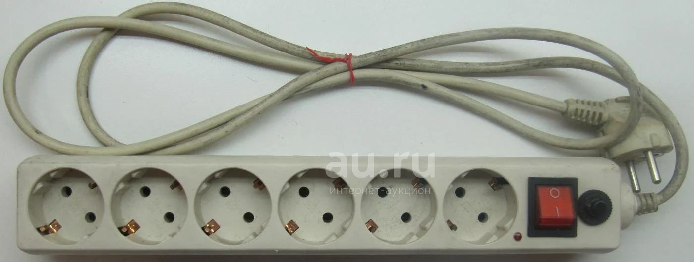 Сетевой фильтр 1,5 м 6 гнёзд ПВС (3*0,75) с заземлением, предохронителем и выключателем. Б/У.