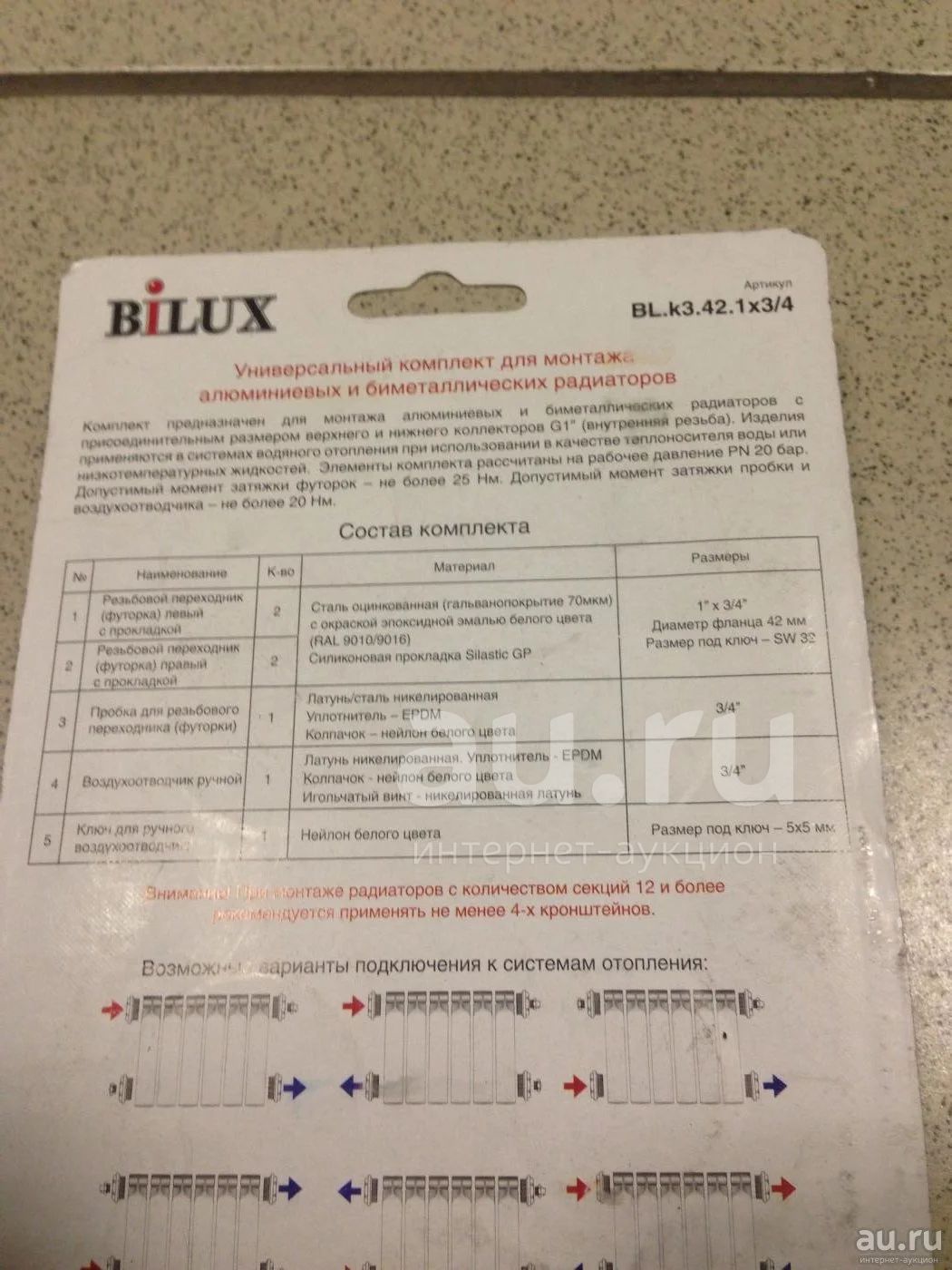 Комплект универсальный для монтожа алюминиевых и биметаллических радиаторов3/4. 7 предметов