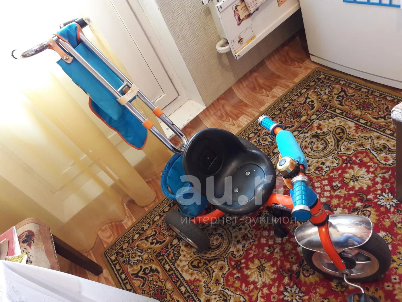 велосипед на фото , хорошее состояние , с ручкой с подножкой , все функционирует,