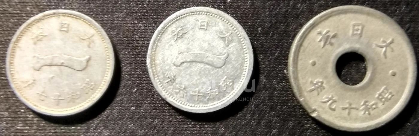 Япония. Набор из 3х монет 1 сен 1941, 1 сен 1942, 10 сенов 1944 с рубля!