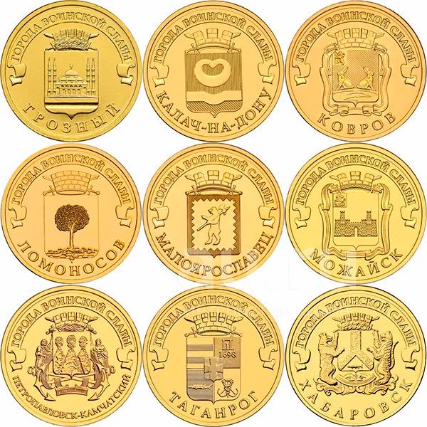 10 рублей ГВС 2015 unc все -225р. по одной - 25р.