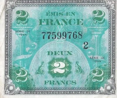 250 руб.2 франка 1944 год .Франция. Оккупация союзными войсками. "Флаг"
