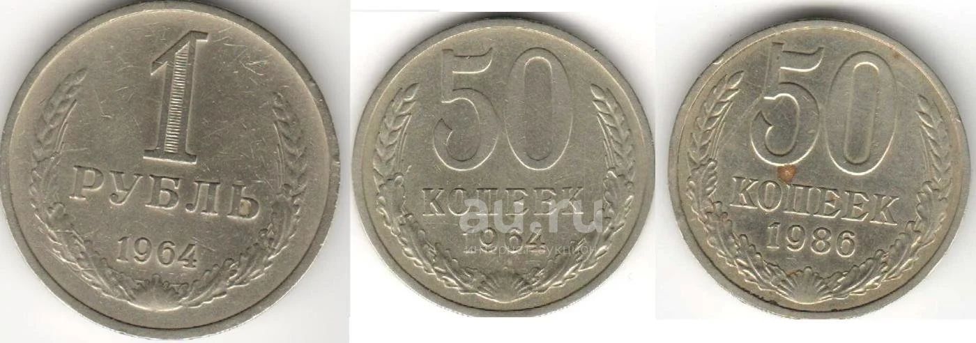 СССР 1 рубль 1964 г., 50 копеек 1964 г., 50 копеек 1986 г.