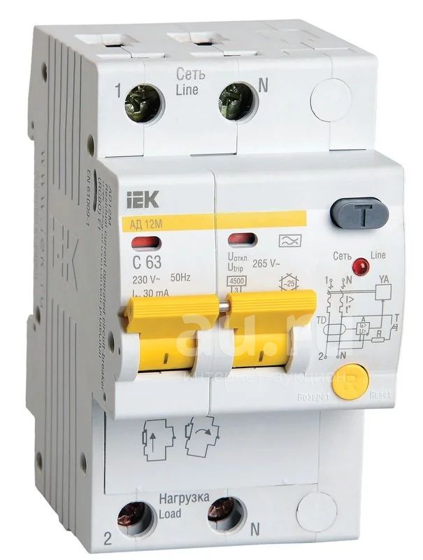 В изделиях предусмотрена индикация срабатывания от дифференциального тока, а для АД12М также светодиодная индикация включенного состояния. АД12М сохраняет работоспособность при снижении напряжения электрической сети до 50 В.